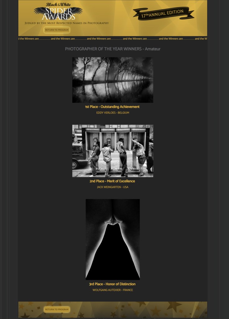 Liste d’annonce des 3 « Photographer of the Year« amateurs des 17eme Black and White Spider Awards.